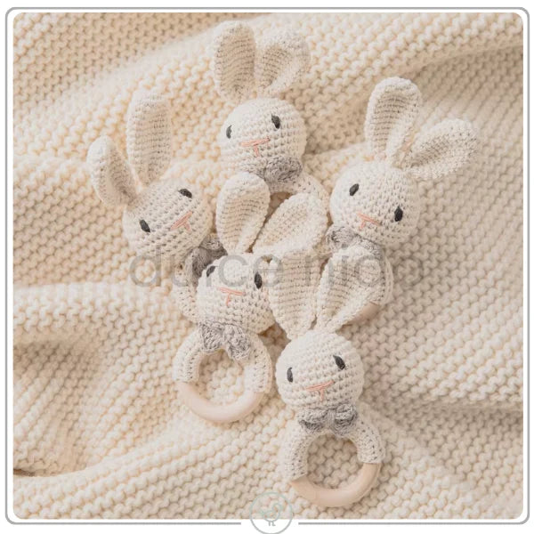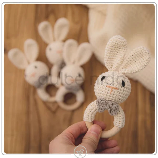Sonajero de Conejito Tejido en Croché con Aro de Madera | BunnyCalm Dulce