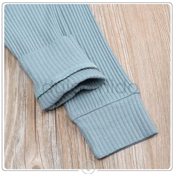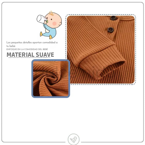 Tejido acanalado, suave y ligeramente elástico, que se adapta al cuerpo sin apretar y acompaña al bebé cuando rueda, gatea o duerme.