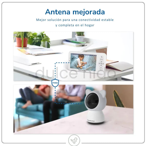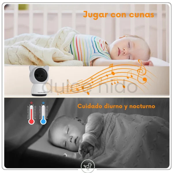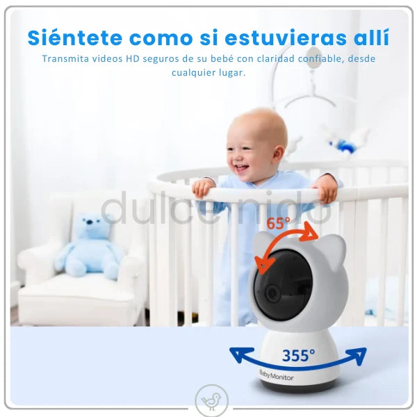 El BabyGuard Dulce es un monitor de bebé HD con pantalla LCD de 5 pulgadas, conversación bidireccional, cámara con movimiento tipo PTZ y canciones de cuna integradas, pensado para seguir al pequeño con alta definición mientras la rutina de la familia continúa.